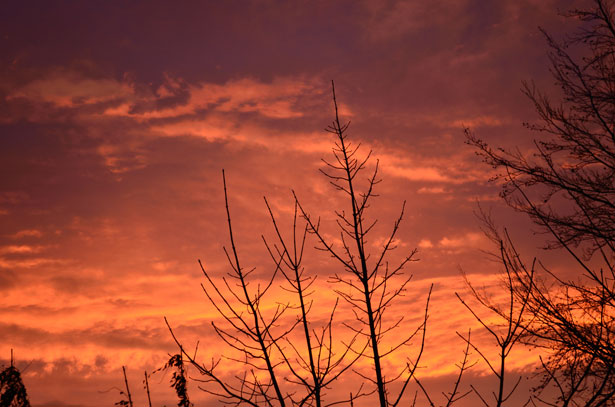 red-morning-skyBirds find nooks and crannies in your house, sparrows and swallows make nests there. They lay their eggs and raise their young, singing their songs in the place where we worship. God-of-the-Angel-Armies! King! God! How blessed they are to live and sing there!