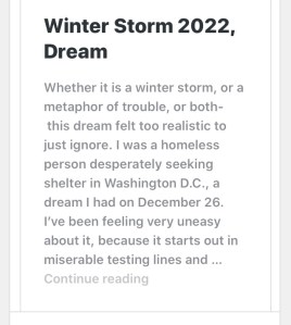 After a winter storm in DC., it seems another crises sparks up and in the dream I’m seeing frantic scrambling in the “situation room” at the White House over an early warning system failure. In reality what followed after the DC winter storm was the Russia and Ukraine war,  we now know. Pray our country will be ready,